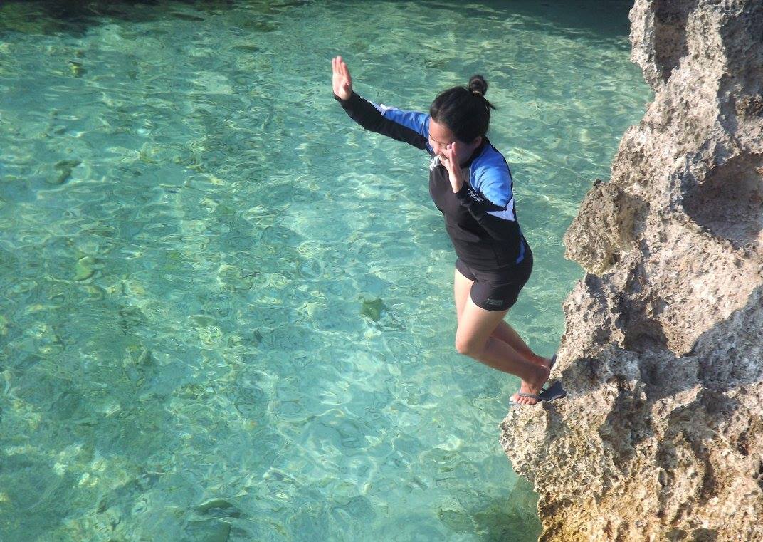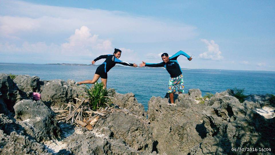 Like what our tour coordinator said that the island has a different appeal, not the usual island that we all think of. Dapa has narrow shores with craggy rugged features and rock formations.Trip to this island isn’t complete without climbing the top of its huge up side down rock formation. Be careful since the rocks can be very rough believe me because it ruin my favorite elephant pant that I bought in Thailand when I sit on rock while taking my selfie.hahaha